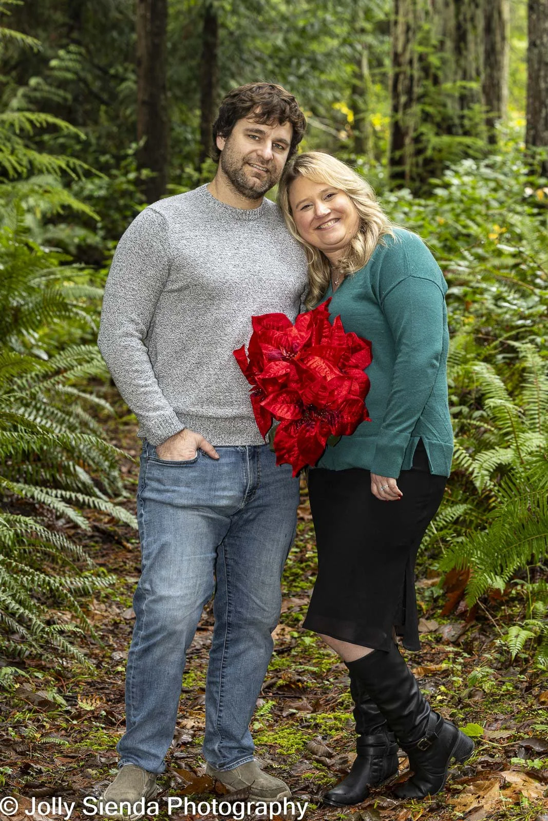 Holiday photos of Kim and Brandon by Jolly Sienda Photography and Studio, Bremerton, Washington.